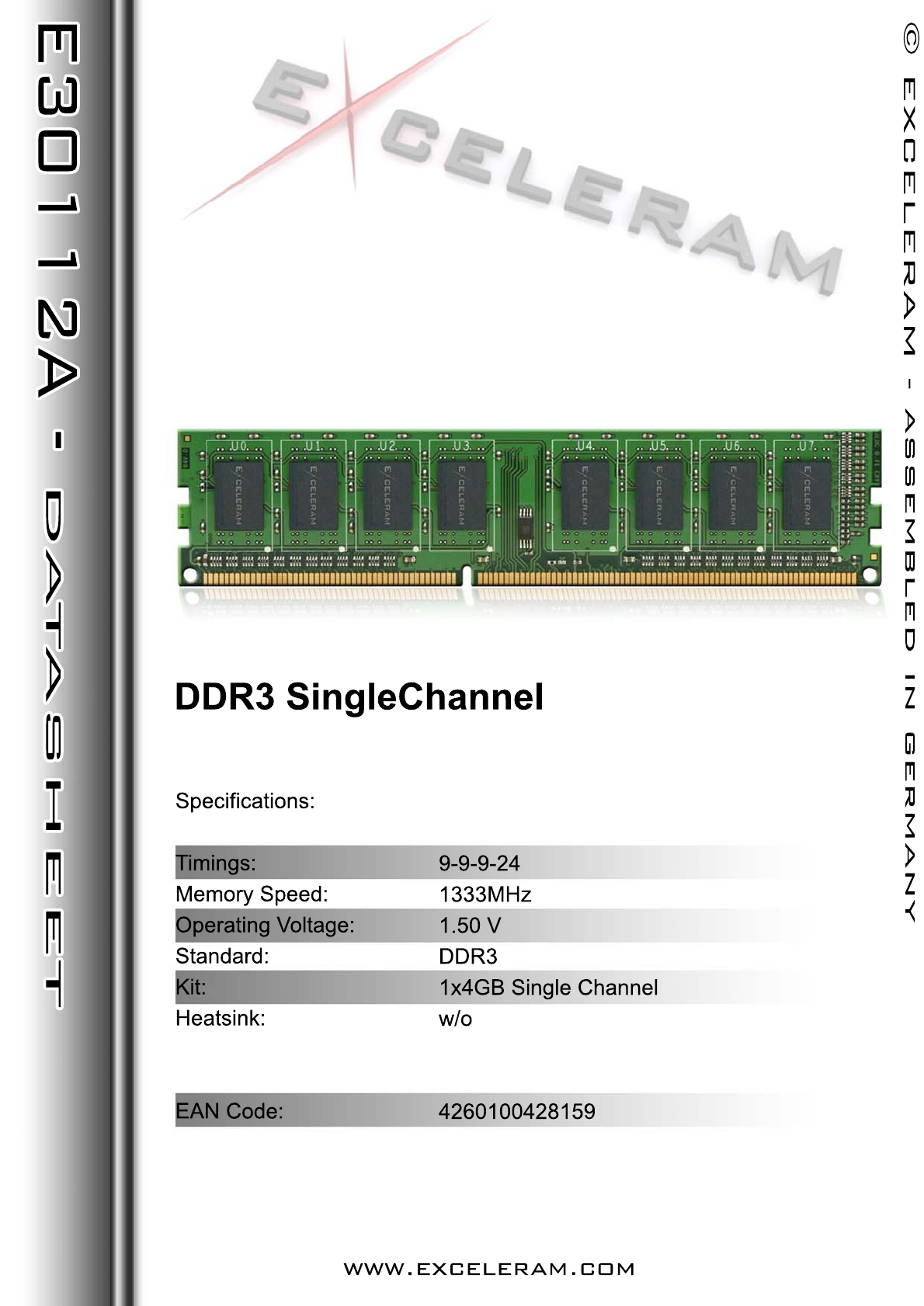 Stöbern Sie online oder laden Sie Datenblatt nach Speichermodule Exceleram E30112A herunter. Exceleram 4GB DDR3 PC3-10666 Benutzerhandbuch